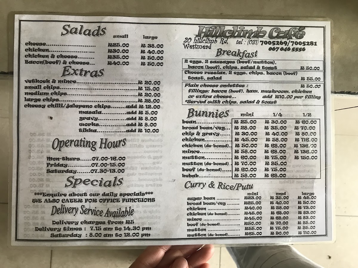 If you're searching for a hidden gem in Pinetown, look no further than Hillclimb Cafe, a delightful establishment that brings the vibrant flavors of South Africa to your plate. Nestled in the industrial heart of Westmead, this cafe specializes in authentic curry cuisine and offers an inviting atmosphere that’s perfect for a quick bite or a leisurely meal.